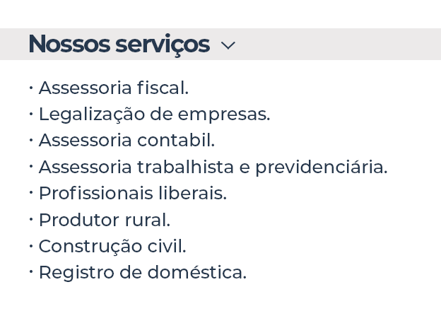 Oferecemos abertura de empresas, contabilidade fiscal, folha de pagamento, consultoria tributária e planejamento financeiro.